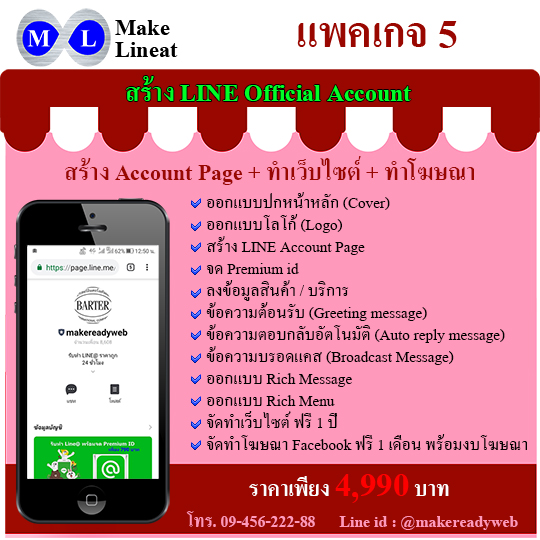แพคเกจจัดทำ LINE@ (Line Official) พร้อมจดทะเบียน Premium ID